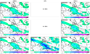 On December 23, 2023, a waving cold front was over Central Europe, and precipitation was moving from the west at this boundary. Analyzing the three-hour aggregated AIREN-NWP forecasts, the peak precipitation amounts of the GFS model are correctly adjusted.