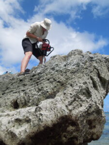 When we take samples from living coral reefs, we use scuba gear and underwater drills to extract a core. In the lab, we split these core samples open and then very painstakingly subsample the skeleton millimeter by millimeter to measure their isotopic composition. Sometimes we’re lucky and come across sites where we find what we call subfossil corals. They were tossed onto the beach by strong wave action or a tsunami. Those provide us with a longer history of climate change because they grew sometime in the past, unlike living corals, which provide us with a snapshot of current conditions. If we get enough of those subfossil corals, we can piece together an even longer history of ocean change, and we can then start to say something about the longer-term climate trends.