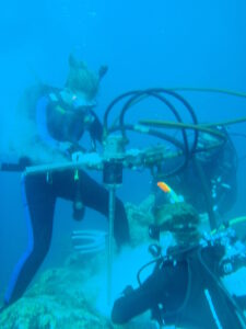 Corals (the types that build reefs) are tiny polyps, animals that build a skeleton very similar to the shells that you find on a beach. It’s composed of the same mineral, calcium carbonate, which stores the information about water isotopes we talked about earlier. In other words, that’s the “history book”. As the coral grows, the isotopic composition of the oxygen it builds into its skeleton is dependent on mainly temperature and the isotopic composition of the surrounding seawater. As paleoclimate scientists, we measure the chemical and isotopic composition of its skeleton. In the past, people used to think corals could mainly inform us about past temperatures, but we were able to tease out records that provided information about the hydrological cycle as well. For example, in our study, corals in the western Pacific provided key insights into changes in the water cycle over this region.