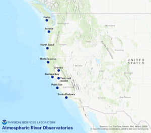 To aid in predicting and monitoring these extreme weather events, NOAA Physical Sciences Laboratory (PSL) operates nine atmospheric river observatories at sites distributed along the coast from Washington to Southern California. These unmanned weather stations send round-the-clock observations back to the laboratory, which analyzes and displays the data publicly on its Atmospheric River Portal. The National Weather Service uses this data portal to produce forecasts and weather warnings. State and local agencies also use the portal for creating water management strategies and emergency response planning.
