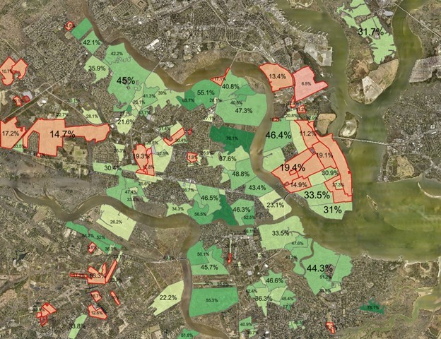 For example, as part of a NOAA heat study grant, Charleston, South Carolina, officials used the high-resolution data to determine which subdivisions were experiencing unusually high impacts from heat. They then analyzed areas available for tree plantings in public housing properties. These trees will help mitigate heat risk and improve the green space within these neighborhoods.