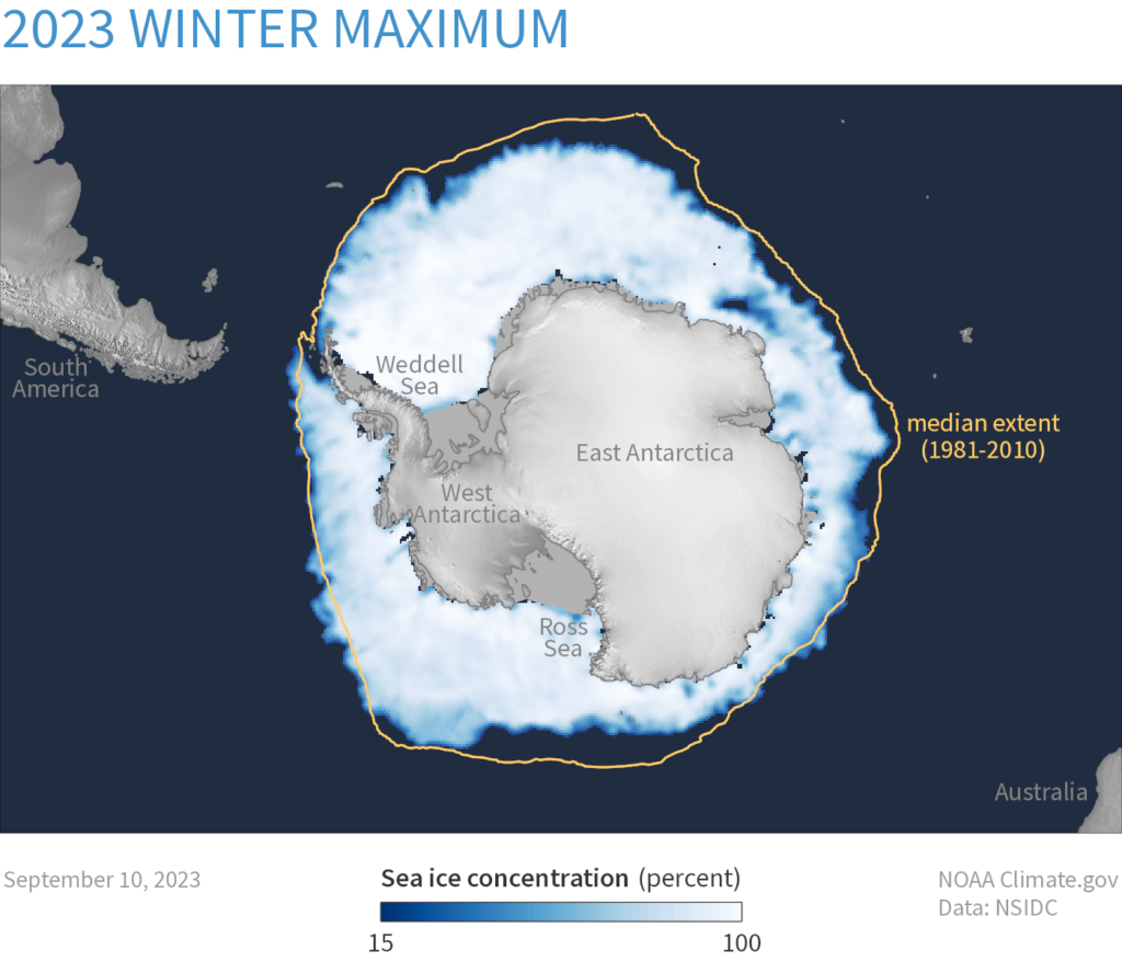 The research, funded by the National Science Foundation and the US Department of Energy, shows that the all-time record low Antarctic Sea Ice in 2023 can be explained by warm Southern Ocean conditions and patterns in the winds that circled Antarctica months earlier, enabling forecasts for sea ice coverage around the South Pole to be generated six or more months in advance. This could support regional and global weather and climate models.