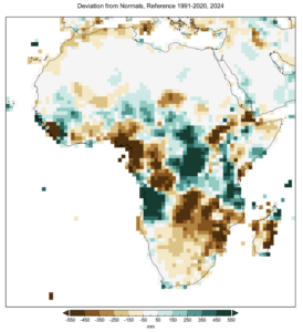 The average surface temperature across Africa in 2024 was approximately 0.86°C above the 1991–2020 long-term average. North Africa recorded the highest temperature (1.28°C above the 1991-2020 average) and this is the sub-region of Africa that is warming fastest. Extreme heat hit many parts of the continent during 2024.