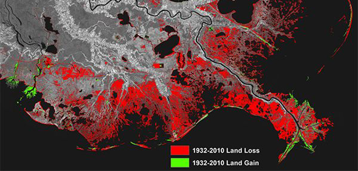 The Mississippi River Delta, one of the world’s largest, has been particularly hard hit. According to NASA the delta region has lost some 2,000 square miles of wetlands in the last 80 years.