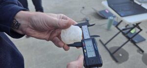 Measuring hail diameter with digital calipers. Credit: Insurance Institute for Business & Home Safety (IBHS)Pods are quickly deployable weather stations that collect standard meteorological observations of temperature, relative humidity, wind speed/direction and pressure. Credit: Flexible Array of Radars and Mesonets (FARM)Hailsondes charging and calibrating. Credit: Australian Bureau of Meteorology Hailsondes are sensors that are designed to fly around within storms to behave like hail. Credit: Australian Bureau of Meteorology