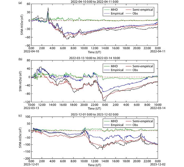 In this approach, the ring current contribution to the Dst index is derived from Burton’s empirical framework, while contributions from other current systems – such as the magnetotail current – are calculated using high-resolution global MHD simulations. This hybrid strategy enables the model to retain the speed of empirical methods while incorporating the physical realism of MHD simulations.
